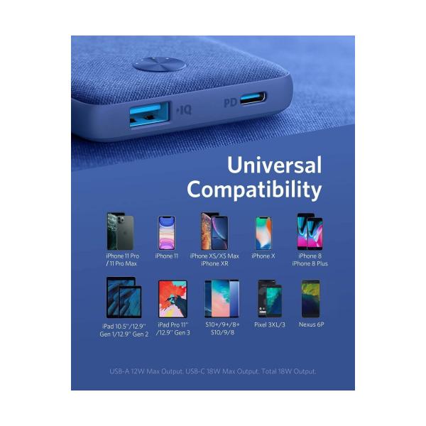 شحن عالي السرعة يضخ منفذ USB-C الذي يوفر الطاقة بقدرة 18 وات طاقة كافية لشحن iPhone 11 Pro بأقصى سرعة. توافق عالمي يجمع بين منفذ USB-C لإيصال الطاقة ومنفذ USB مزود بتقنية PowerIQ لتوفير الشحن بسلاسة لأي جهاز محمول تقريبًا. القوة أثناء التنقل إن السعة التي تبلغ 10000 مللي أمبير في الساعة كافية لتوفير شحنات متعددة للأجهزة المحمولة الخاصة بك - أينما كنت. ما تحصل عليه شاحن محمول PowerCore Slim 10000 PD ، وكابل USB-C إلى C ، وحقيبة سفر ، ودليل ترحيب. (كابل USB-C إلى Lightning غير مضمن) إعادة شحن توصيل الطاقة استخدم شاحن توصيل طاقة USB-C لشحن PowerCore في 4.5 ساعات فقط.