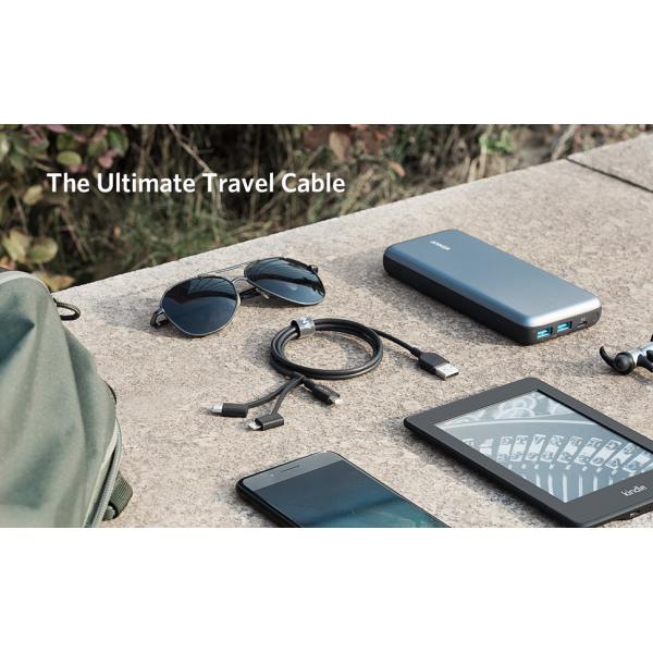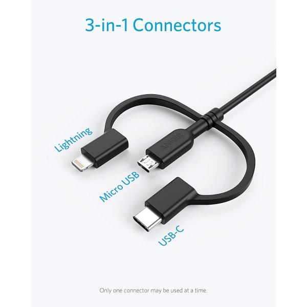 كابل Anker Powerline II 3 في 1 وكابل Lightning / Type C / Micro USB لأجهزة iPhone و iPad و Huawei و HTC و LG و Samsung Galaxy و Sony Xperia والهواتف الذكية التي تعمل بنظام Android والمزيد.