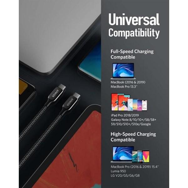 PowerLine + III USB-C إلى USB-C كابل متوافق عالي السرعة وقوي التحمل قوي ومتين هيكل داخلي محسن يعني الجيل الأحدث