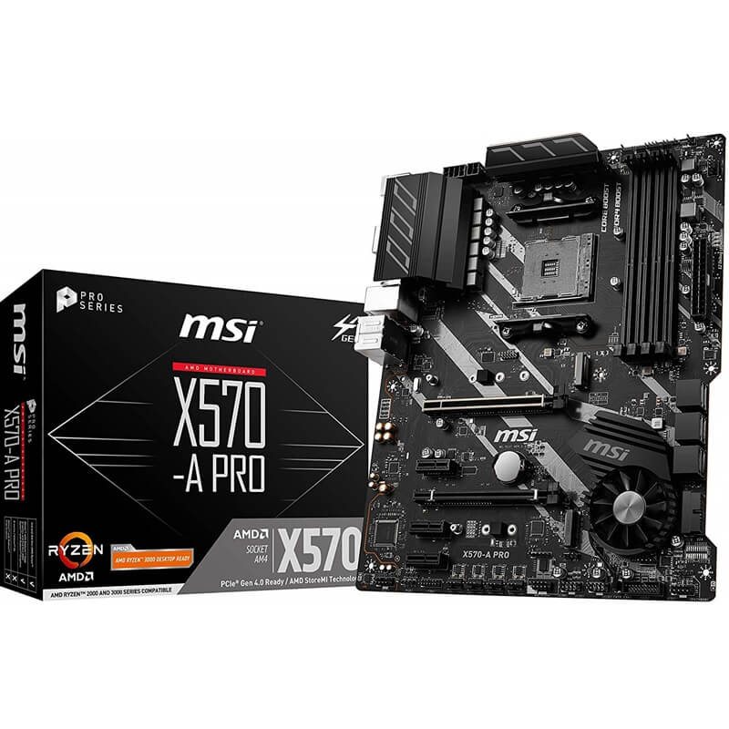 MSI X570A PRO AM4 Socket AMD Motherboard, 4Dimms, 2M.2, CrossFire, PCIe, Audio Boost, Raid, USBC