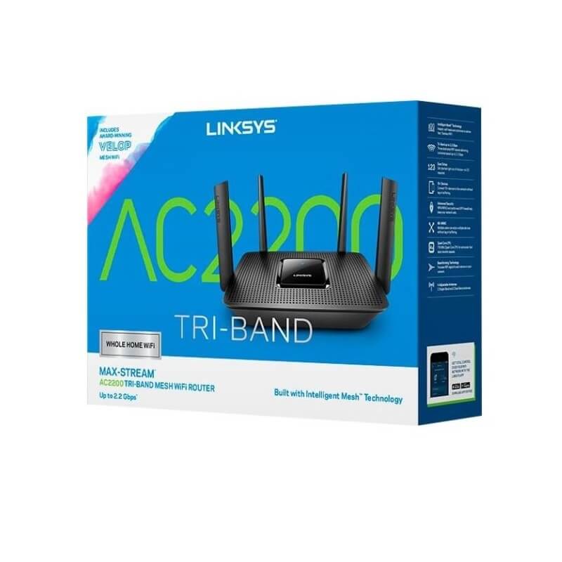 Upgrade your home WiFi and get extremely fast wireless speeds with the Linksys Max-Stream AC2200 MU-MIMO Tri-Band WiFi Router (MR8300). Perfect for households that thrive on entertainment, this Tri-Band router delivers superior speeds of up to 2.2 Gbps throughout your home. The MR8300 delivers a dedicated signal to each connected device using MU-MIMO technology, so the entire family can enjoy simultaneous 4K streaming, online gaming, and more. It’s also future-proof thanks to built-in Mesh WiFi technology: simply add a Velop Mesh WiFi node to expand coverage in any area of your home.