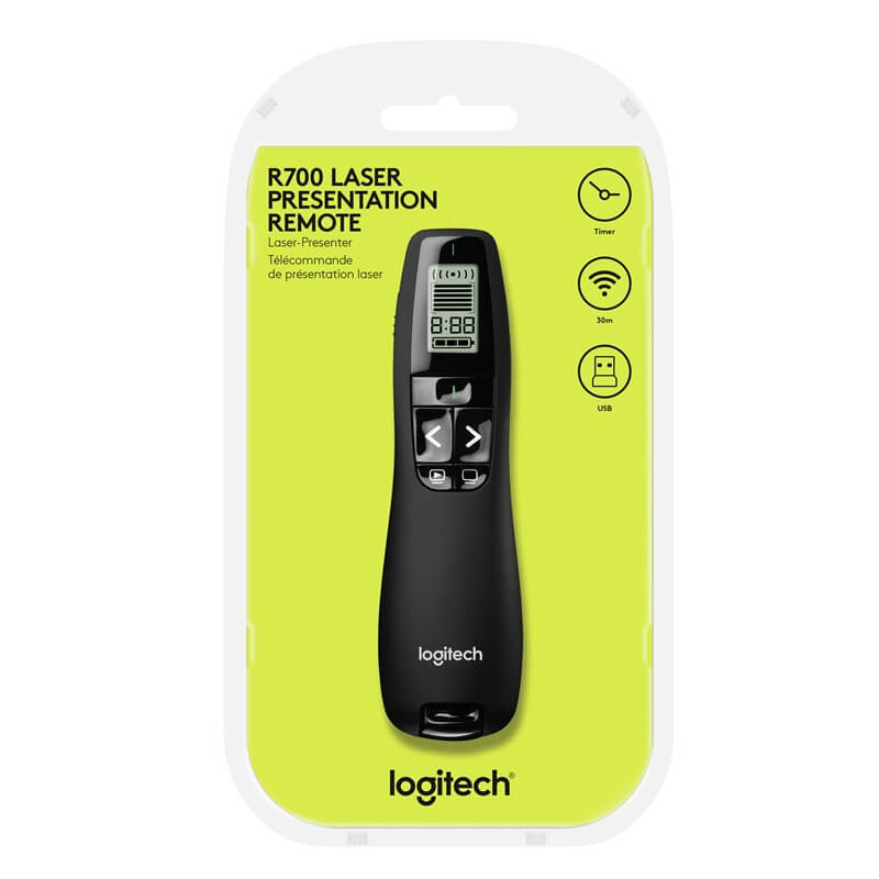 Logitech R700 Laser Presentation Pointer, Wireless Presenter, LCD Display, 30Meter, Navigation Slideshow, Plug & Play
