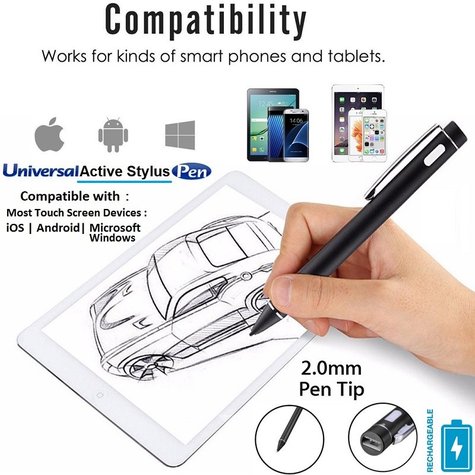 - Universal Active Stylus Capacitive Pen 2.0mm for iOS | Android | Windows Touch Screen , Writing , Drawing experience on Tablets & Smartphones