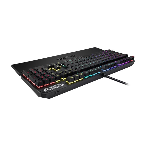 لوحة مفاتيح ميكانيكية ASUS TUF Gaming K3 RGB مع تمرير مفتاح N ، ومجموعة مفاتيح وسائط ، وممر USB 2.0 ، وغطاء علوي من سبائك الألومنيوم ، ومسند للمعصم ، وثمانية مفاتيح ماكرو قابلة للبرمجة ، وإضاءة Aura Sync