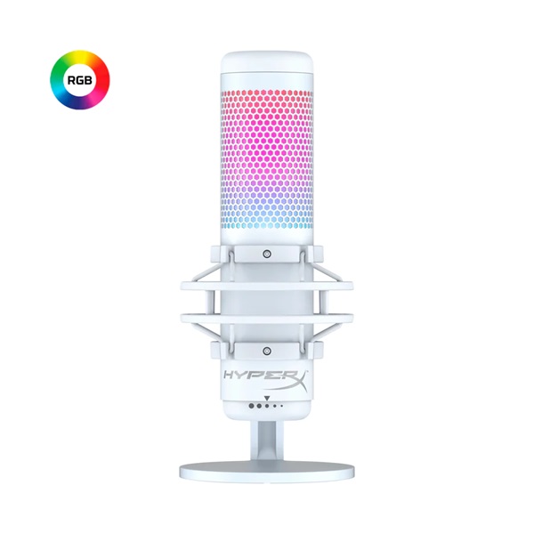 - ميكروفون بمكثف هايبر إكس كواد كاست إس آر جي بي ، أبيض