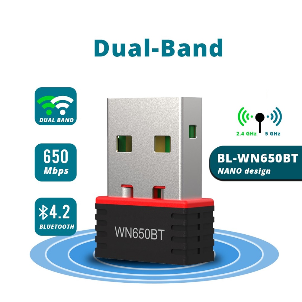 BL-WN650BT ليس فقط محول لاسلكي AC650 ولكن أيضًا محول USB Bluetooth. يضيف Bluetooth بسهولة إلى جهاز الكمبيوتر الذي يعمل بنظام Windows والذي لا يحتوي عليه بالفعل ويوفر اتصالات لاسلكية بين جهاز الكمبيوتر وأجهزة Bluetooth مثل سماعات الرأس وسماعات الرأس وأشرطة العنق ومكبرات الصوت والماوس اللاسلكي ولوحات المفاتيح وما إلى ذلك.