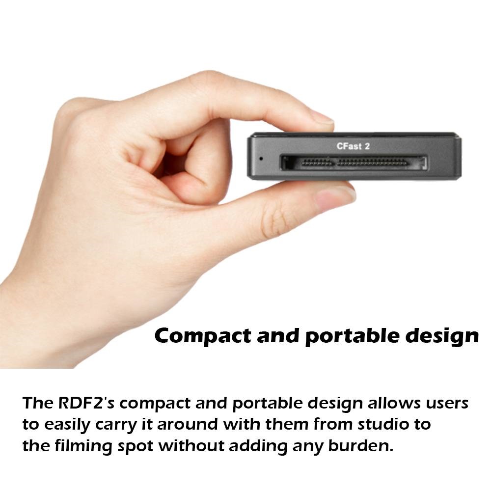 تم تصميم قارئ بطاقة RDF2 للمصورين السينمائيين المحترفين الذين يسعون لتحقيق كفاءة نقل قصوى. إنه لا يدعم مواصفات الجيل التالي من CFast 2.0 فحسب ، ولكنه أيضًا متوافق مع الإصدارات السابقة مع بطاقات الذاكرة CFast 1.1 و CFast 1.0.