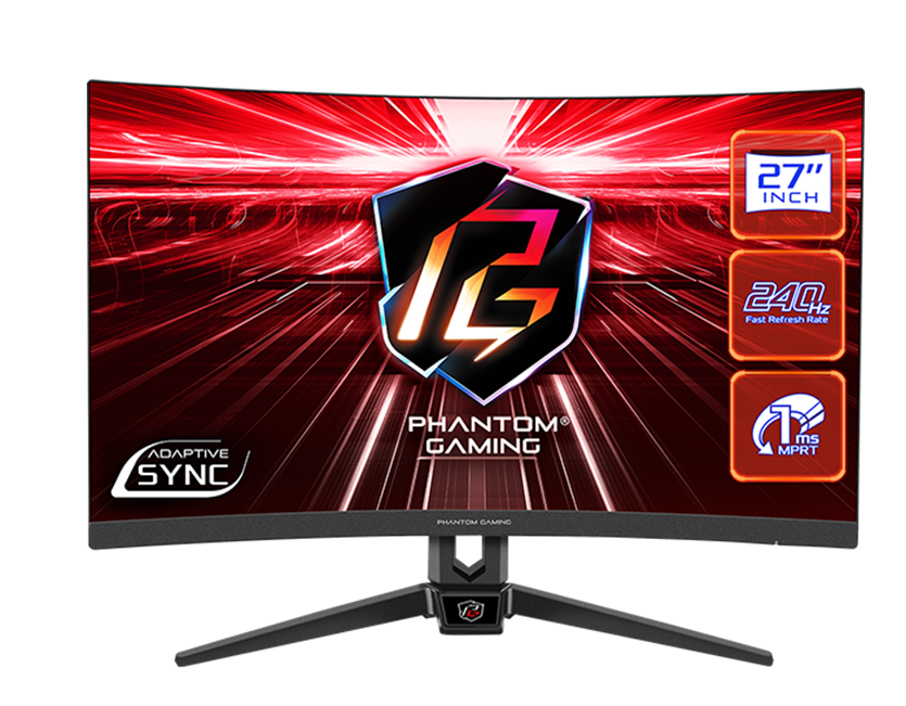 - شاشة الألعاب المنحنية ASRock 27 بوصة FHD 240 هرتز 1 مللي ثانية مكبر صوت VA PANEL
