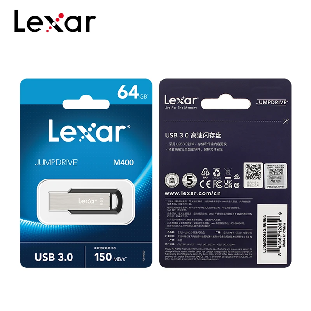 يقوم محرك الأقراص المحمول Lexar ®  JumpDrive ®  M400 USB 3.0 بنقل ملفاتك بشكل أسرع مع أداء USB 3.0 عالي السرعة يصل إلى 150 ميجابايت/ثانية  للقراءة الواحدة . يتيح لك التصميم المعدني وحلقة المفاتيح الأنيقة نقل الملفات بسهولة في أي مكان وفي أي وقت. ومع حماية كلمة المرور Lexar DataShield TM  ، يمكنك التأكد من أن ملفاتك ستكون محمية.