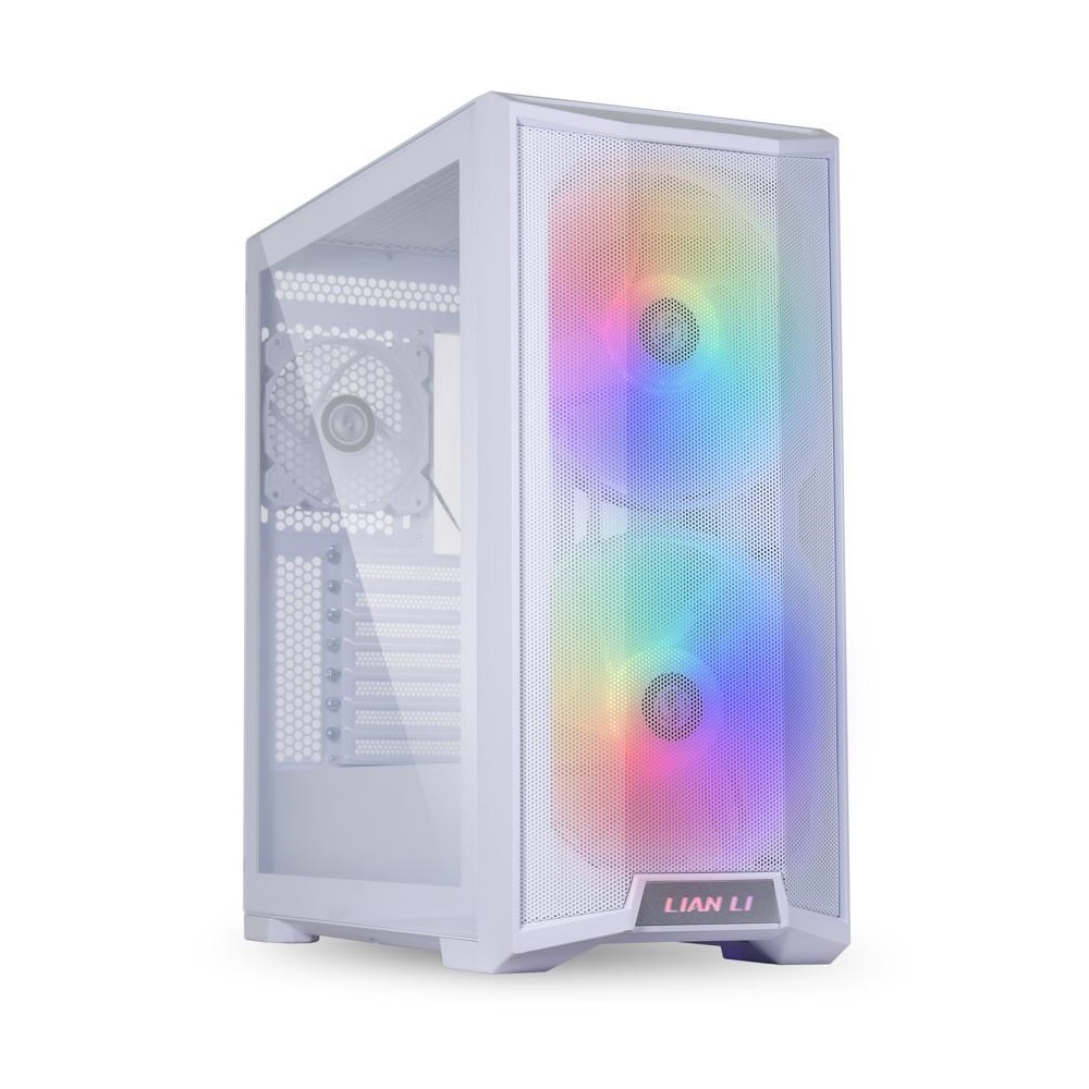 LIAN LI LANCOOL 215 X حافظة كمبيوتر ATX Mid Tower من الزجاج الأبيض - 3 مراوح