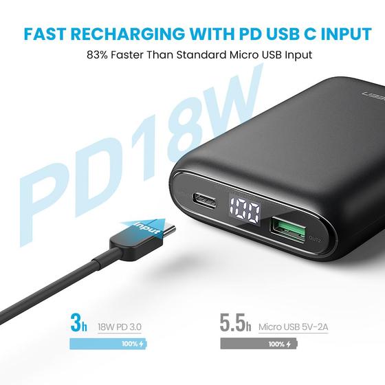 10000mAh High Capacity PD QC Fast Charging & Recharging Charge 2 Devices Simultanously