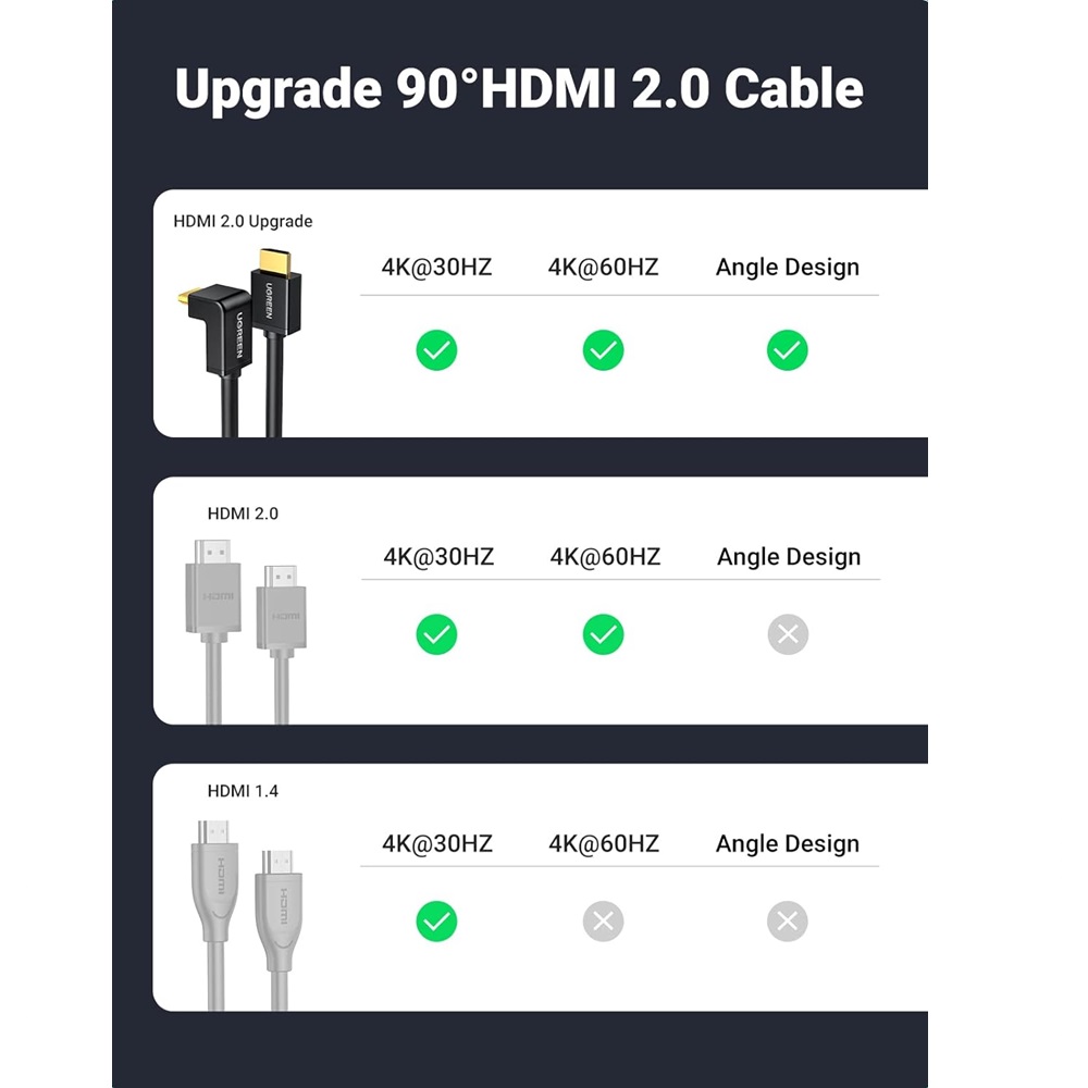 كابل HDMI 10173 من UGREEN، بزاوية قائمة، 4K 60Hz، 90 درجة - 2 متر