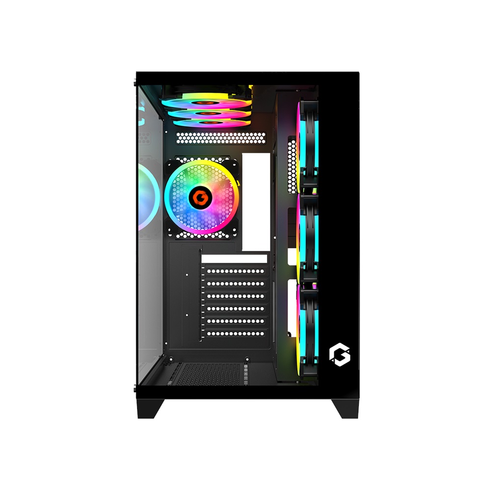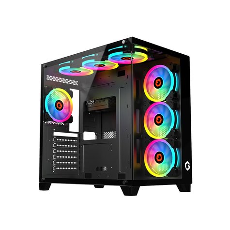 - حافظة كمبيوتر للألعاب من سلسلة Emperor Midnight من GameOn Mid Tower – أسود (7 مراوح)