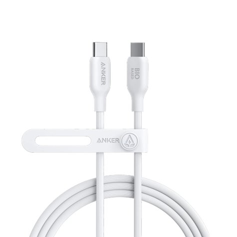 أنكر 544 كابل USB-C إلى USB-C بقدرة 140 واط - مصنوع من مواد طبيعية - بطول 6 أقدام - لون أبيض - الموديل A80F2H21