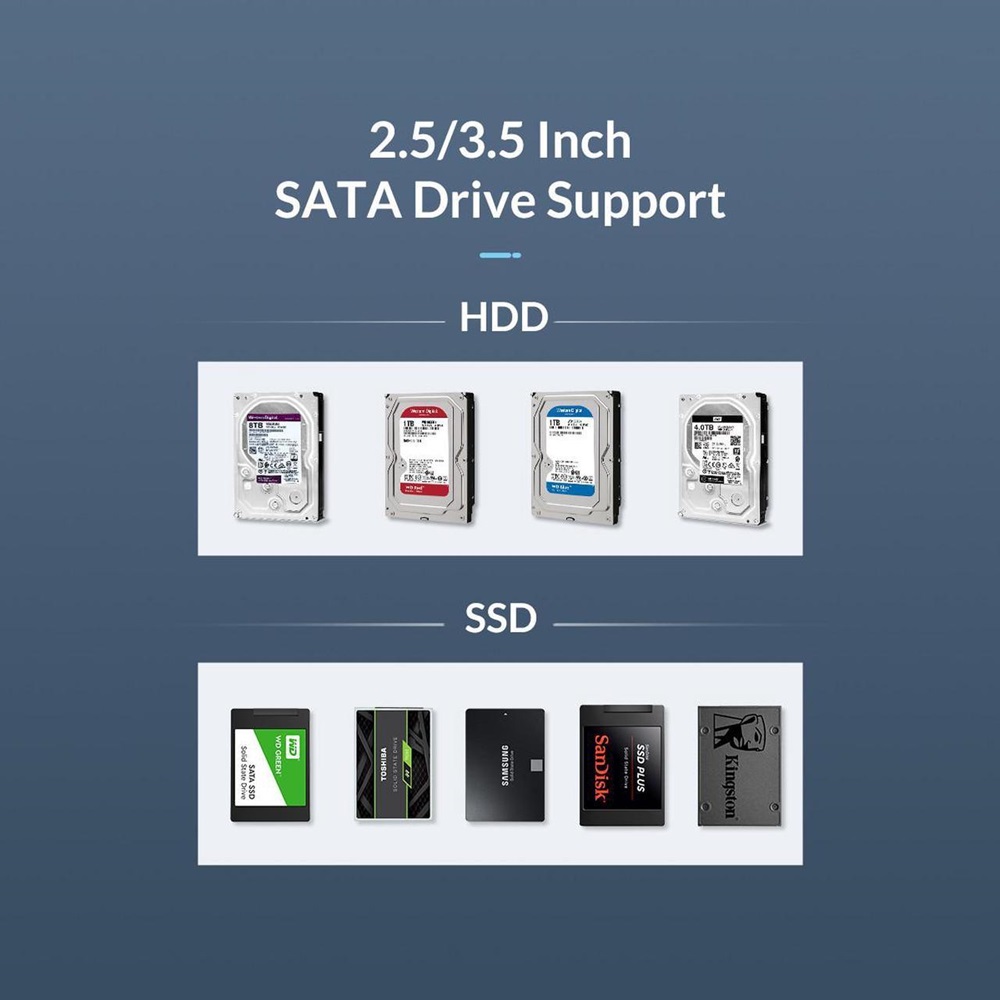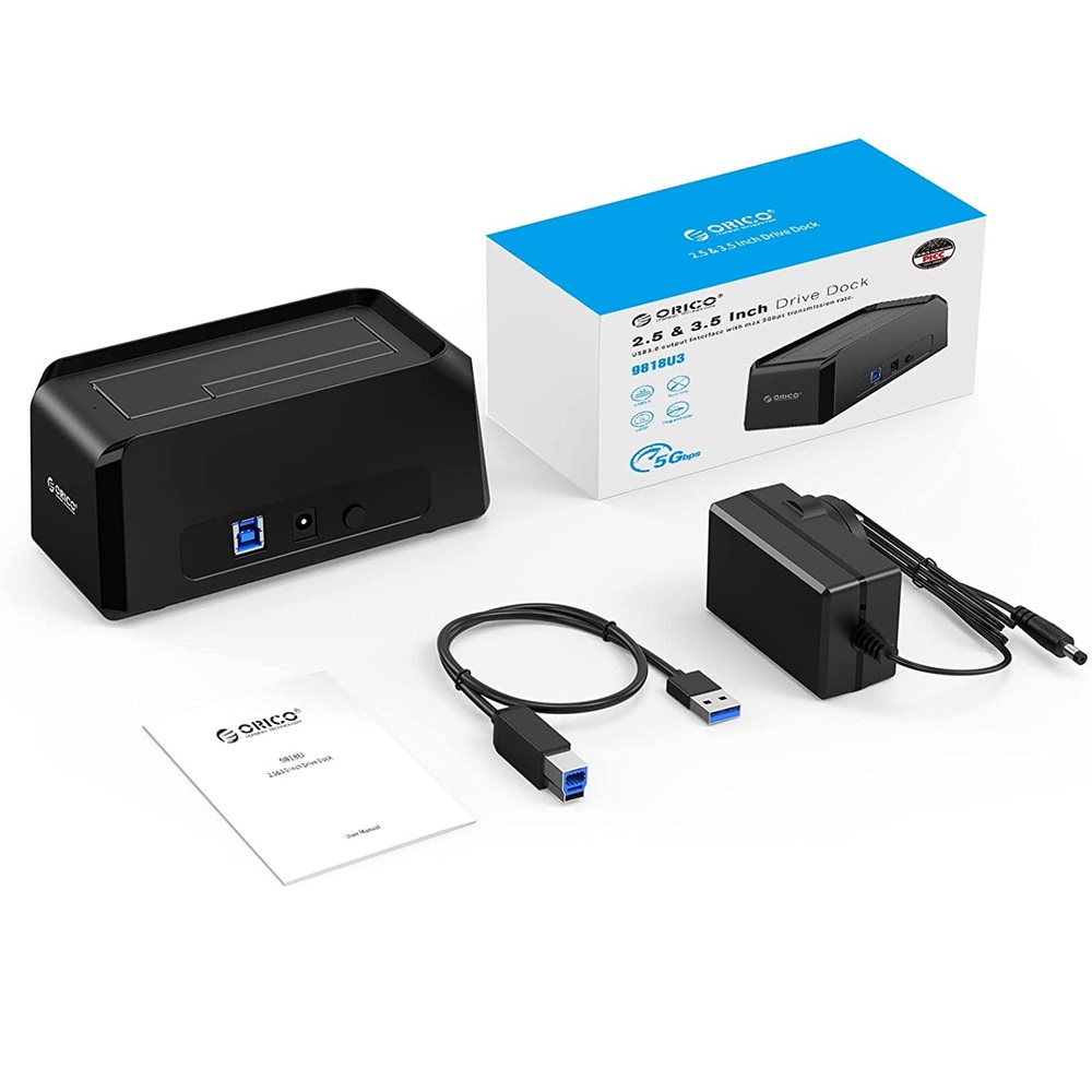 - أوريكو 9818U3 قاعدة محرك أقراص صلبة HDD/SSD مقاس 2.5/3.5 بوصة، USB 3.0 (الحد الأقصى 18 تيرابايت)