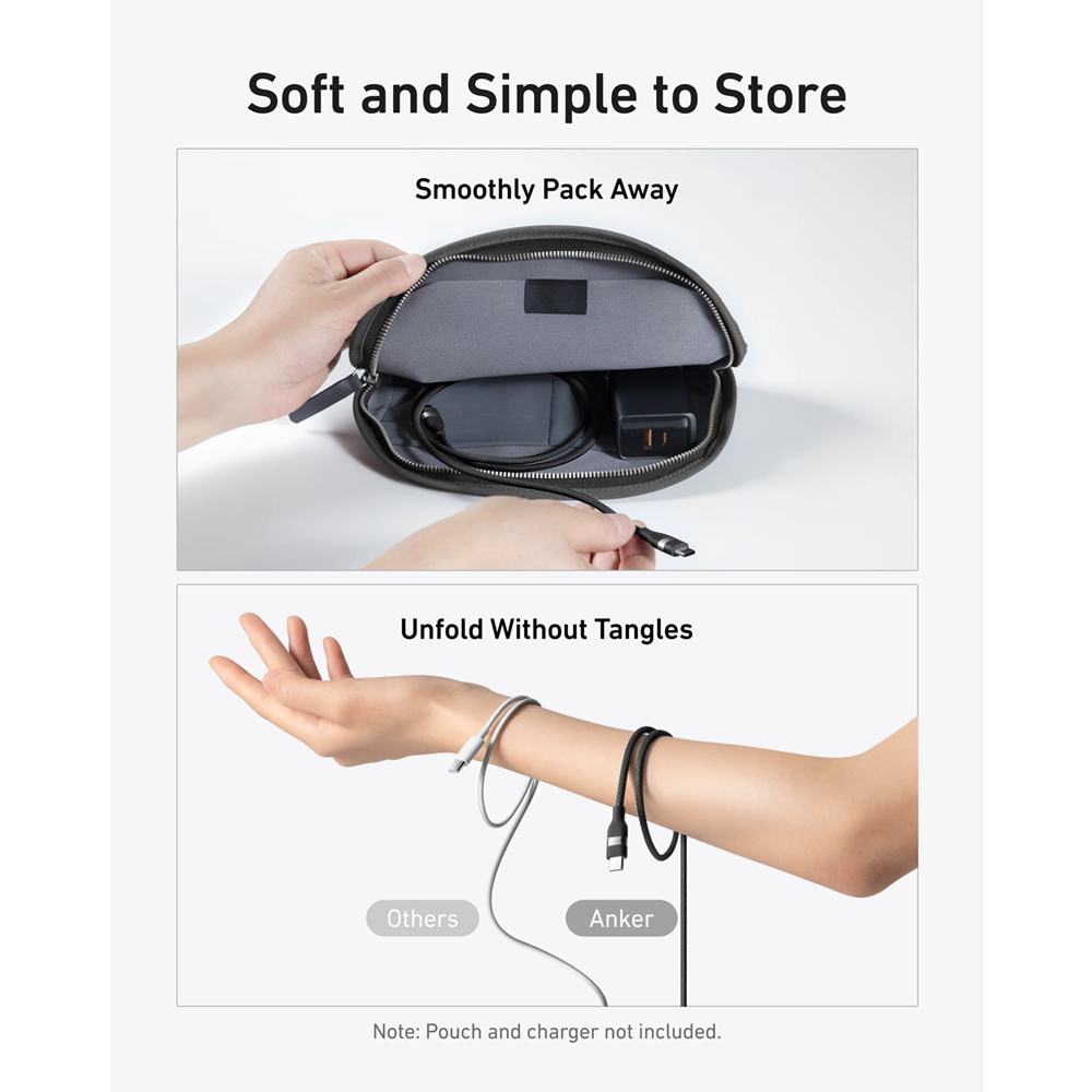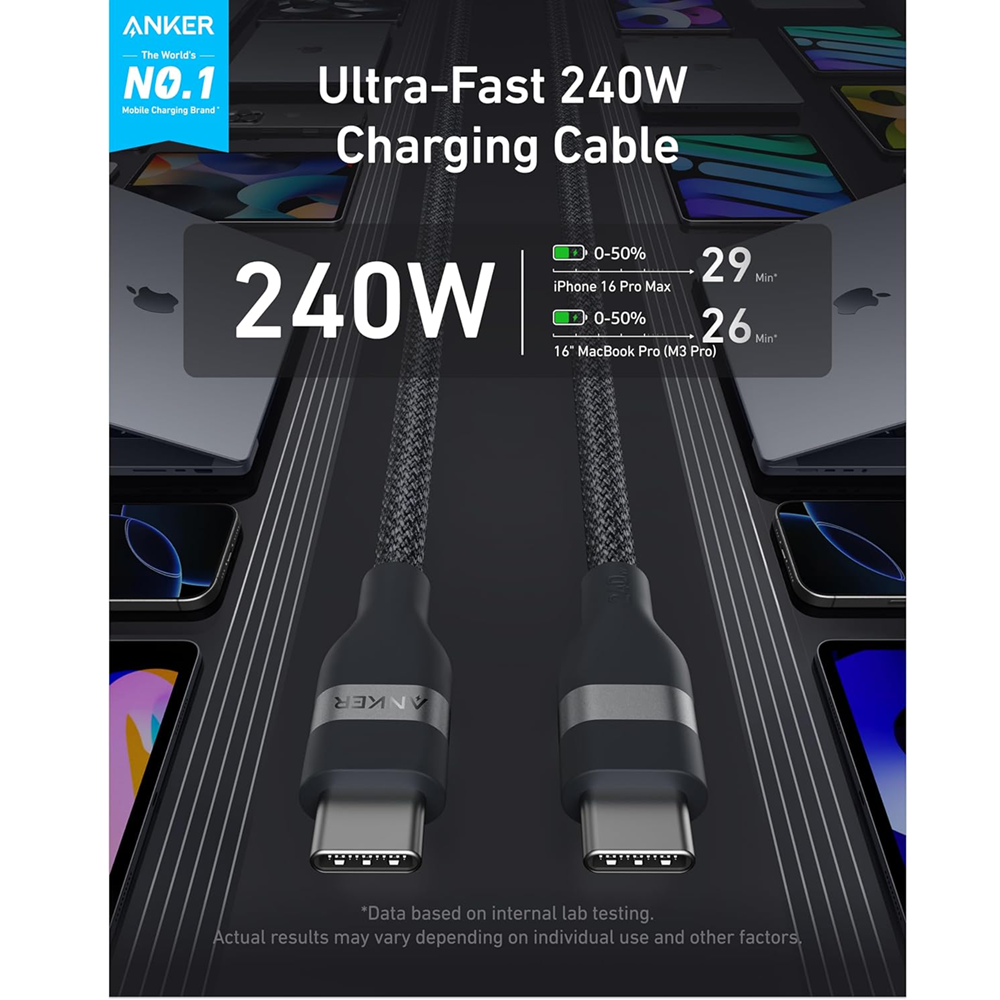 كابل أنكر A82E2 من USB-C إلى USB-C بقدرة 240 واط – ناعم ومتين – بطول 6 أقدام / 1.8 متر، أسود