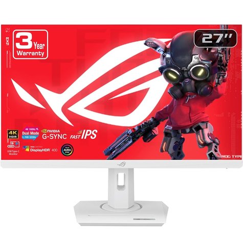 ASUS ROG Strix XG27UCG-W Dual mode Gaming Monitor – 27-inch 3840×2160, dual mode (4K 160Hz or FHD 320Hz), 1ms (GTG), Fast IPS, Extreme Low Motion Blur Sync, USB Type-C, G-Sync compatible (processing), DisplayWidget Center, tripod socket, HDR, Aura Sync