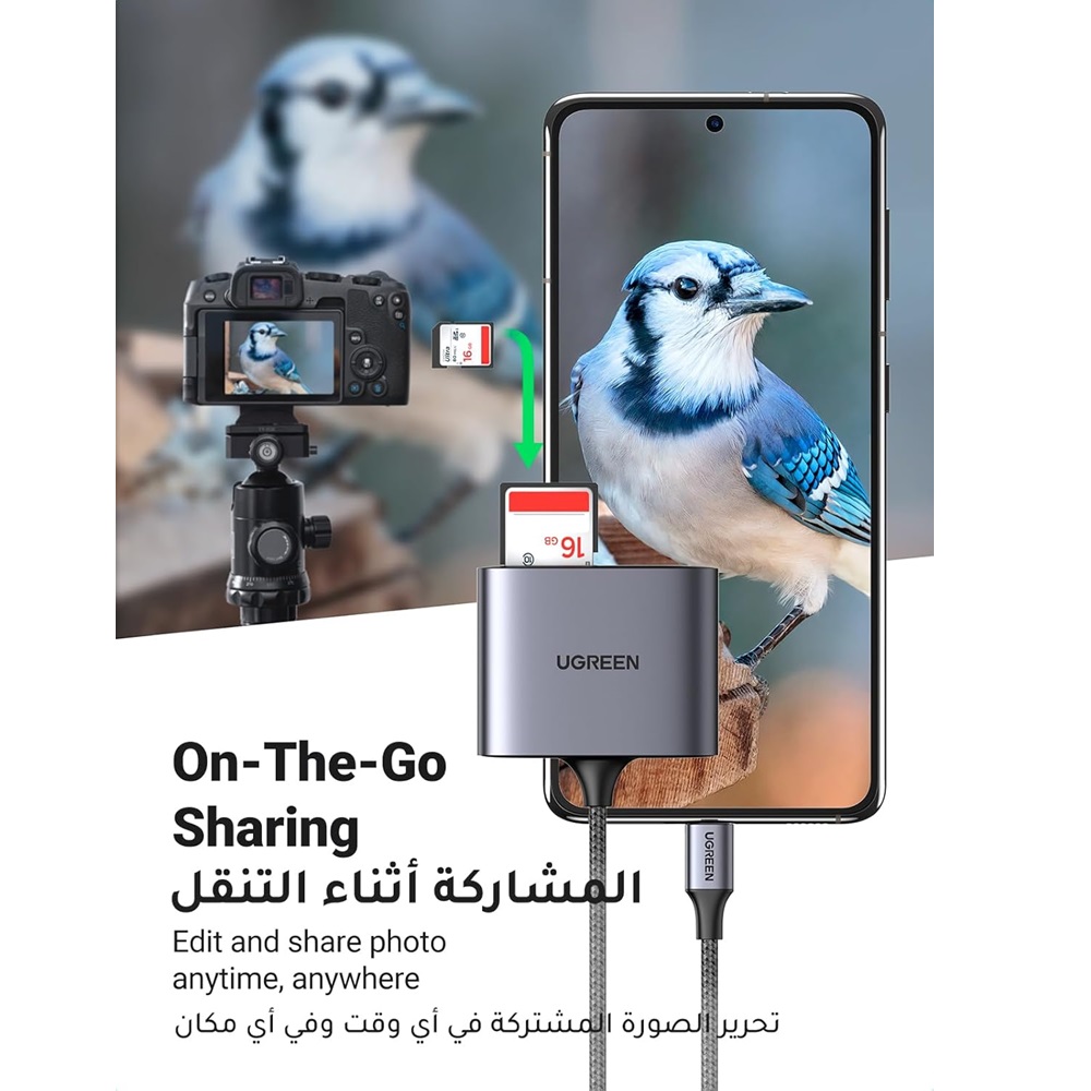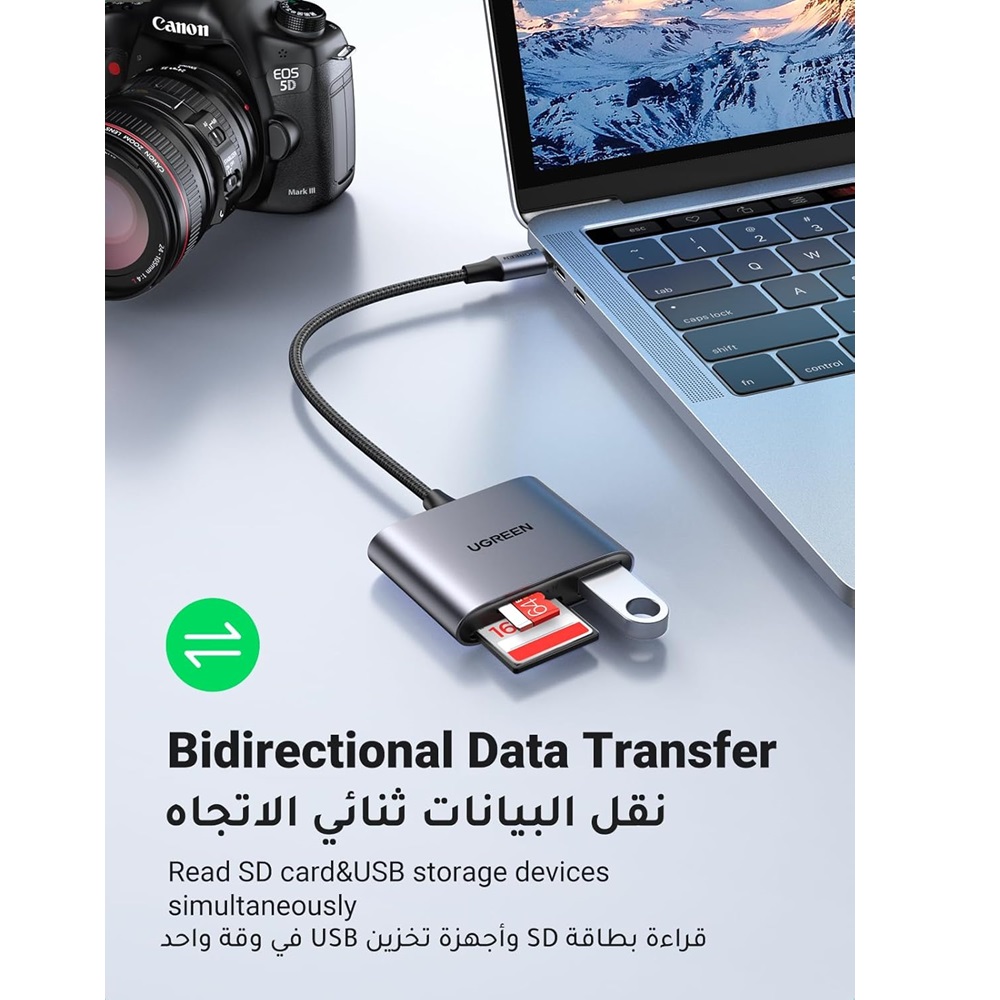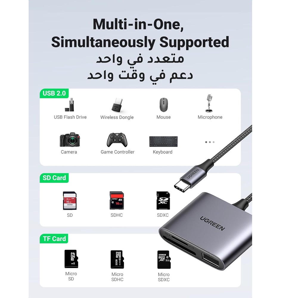 UGreen CM387 قارئ بطاقات 3 في 1 بمنفذ USB-C