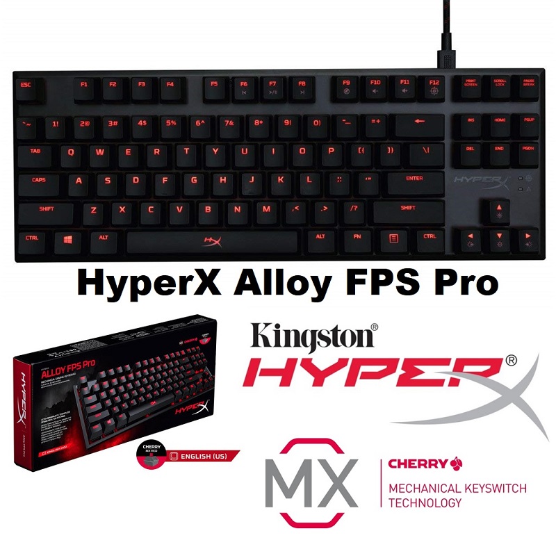 HYPERX ALLOY FPS PRO KEYBOARD, CHERRY MX Mechanical Key Switches, Red Back lighting, 100% Anti Ghosting, Solid Steel Frame, Compact Design, HX-KB4RD1-US/R2