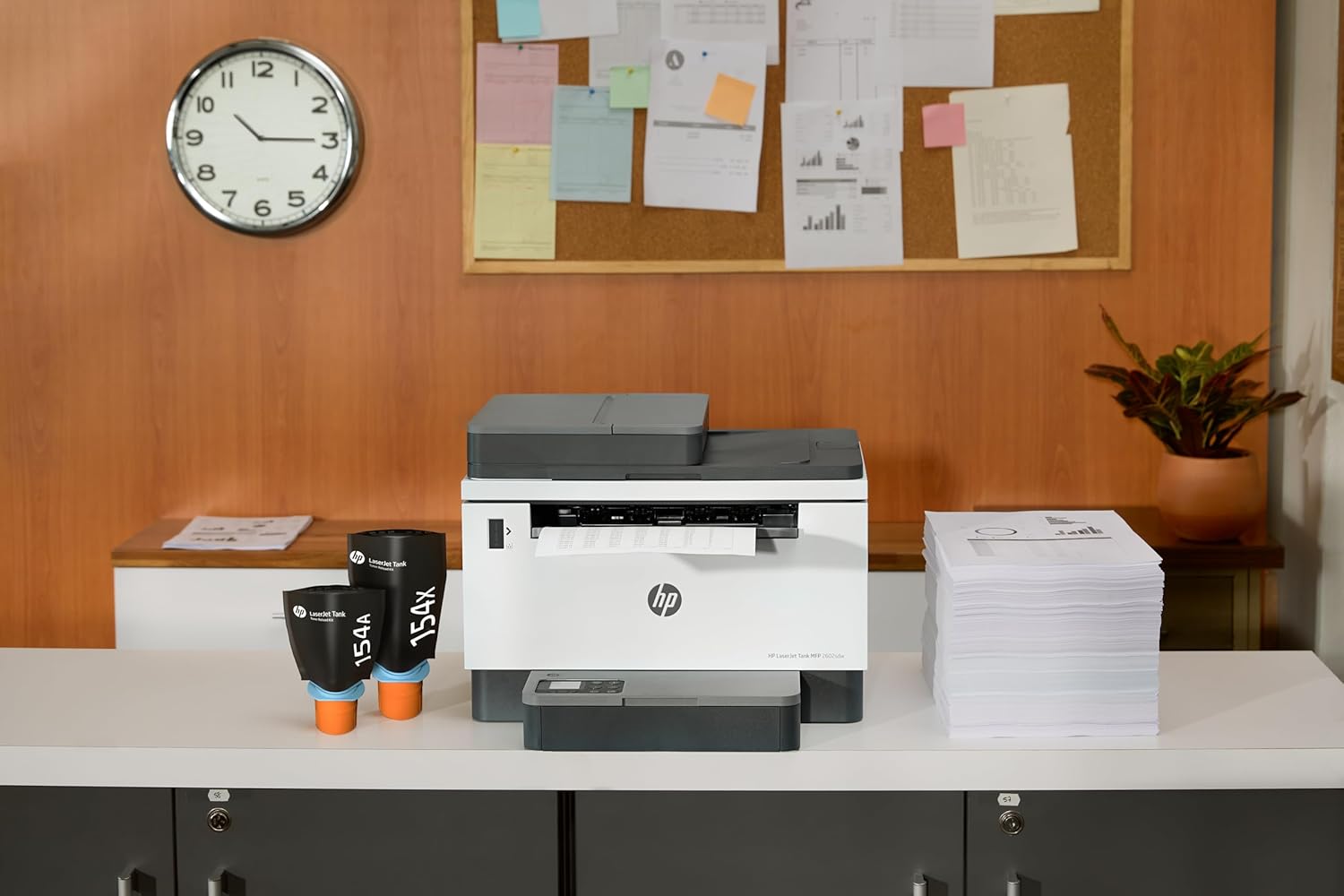 | Replacement cartridges | HP 154A Black LaserJet Tank Toner Reload Kit (Yield ~2500 pages); HP 154X Black LaserJet Tank Toner Reload Kit (Yield ~5000 pages); ( * Declared yields based on ISO/IEC 19752 and continuous printing. Actual yields vary considerably based on images printed and other factors. For details see http://www.hp.com/go/toneryield) |