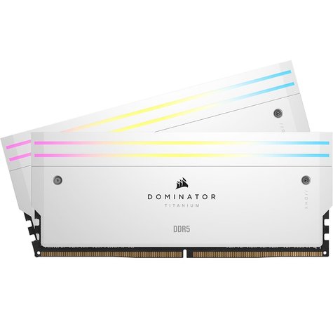 - كورسير 96 جيجابايت 6400 ميجاهرتز DDR5 DOMINATOR TITANIUM RGB ذاكرة رام مكتبية طقم CL32، (48 جيجابايت ×2) باللون الأبيض