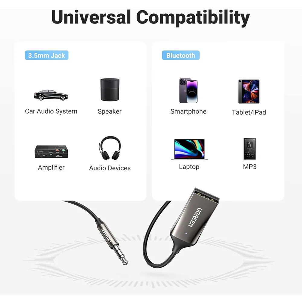 يوجرين (UGREEN) بث صوتي بجودة فائقة (Premium) صوت نقي وخالٍ من التشويش مكالمات لاسلكية (Hands-free)؛ مع كابل حلزوني مرن وقابل للتمدد