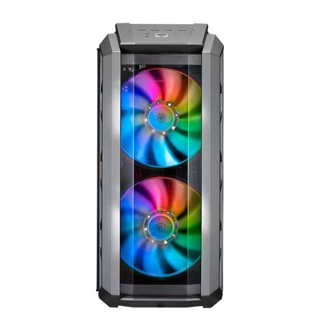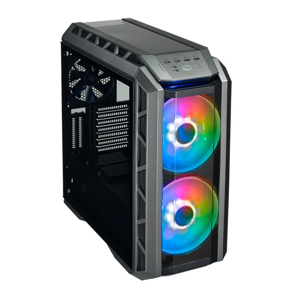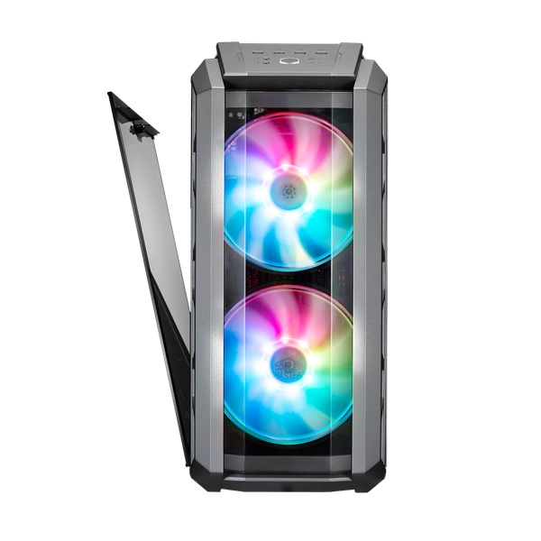 تحتل المراوح المزدوجة 200 مم مركز الصدارة في MasterCase H500P ARGB. يتم توفير تدفق الهواء من خلال شبكة تهوية تمتد عبر محيط الألواح العلوية والأمامية بالكامل ، وهي مصممة ببناء صناعي يشهد على الشكل الذي يتبع الوظيفة.