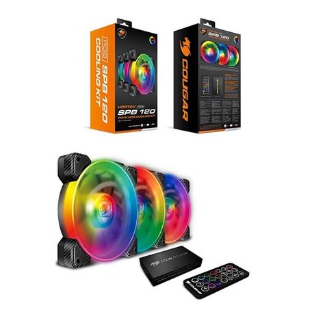 مجموعة التبريد Cougar Vortex RGB SPB 120 3 مراوح ، صامت ، وحدة تحكم عن بعد ، 24 مصباح LED قابل للتحكم ، 100 تأثير إضاءة رائع ، PWM 600-1500 دورة في الدقيقة ، CF – V12SET – SPBRGB