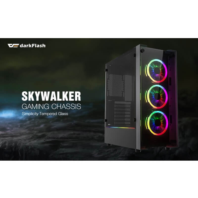 darkFlash Skywalker Mid Tower ATX كيسة كمبيوتر بزجاج مقوى 3 مراوح