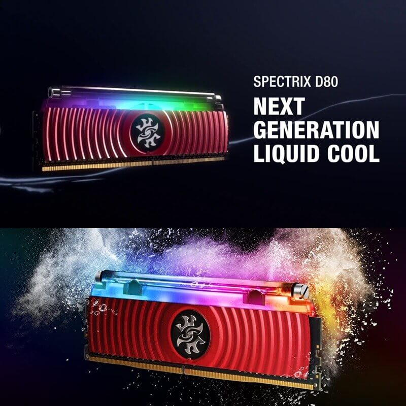 Meet the world’s first DDR4 RGB RAM memory with a hybrid liquid-air cooling system, the SPECTRIX D80. It utilizes a combination of a liquid heatsink that’s hermetically sealed with non-conductive fluid and an aluminum heatsink to deliver effective thermal cooling. What’s more, the liquid heatsink is illuminated with RGB lighting to give your rig a distinctive flair.