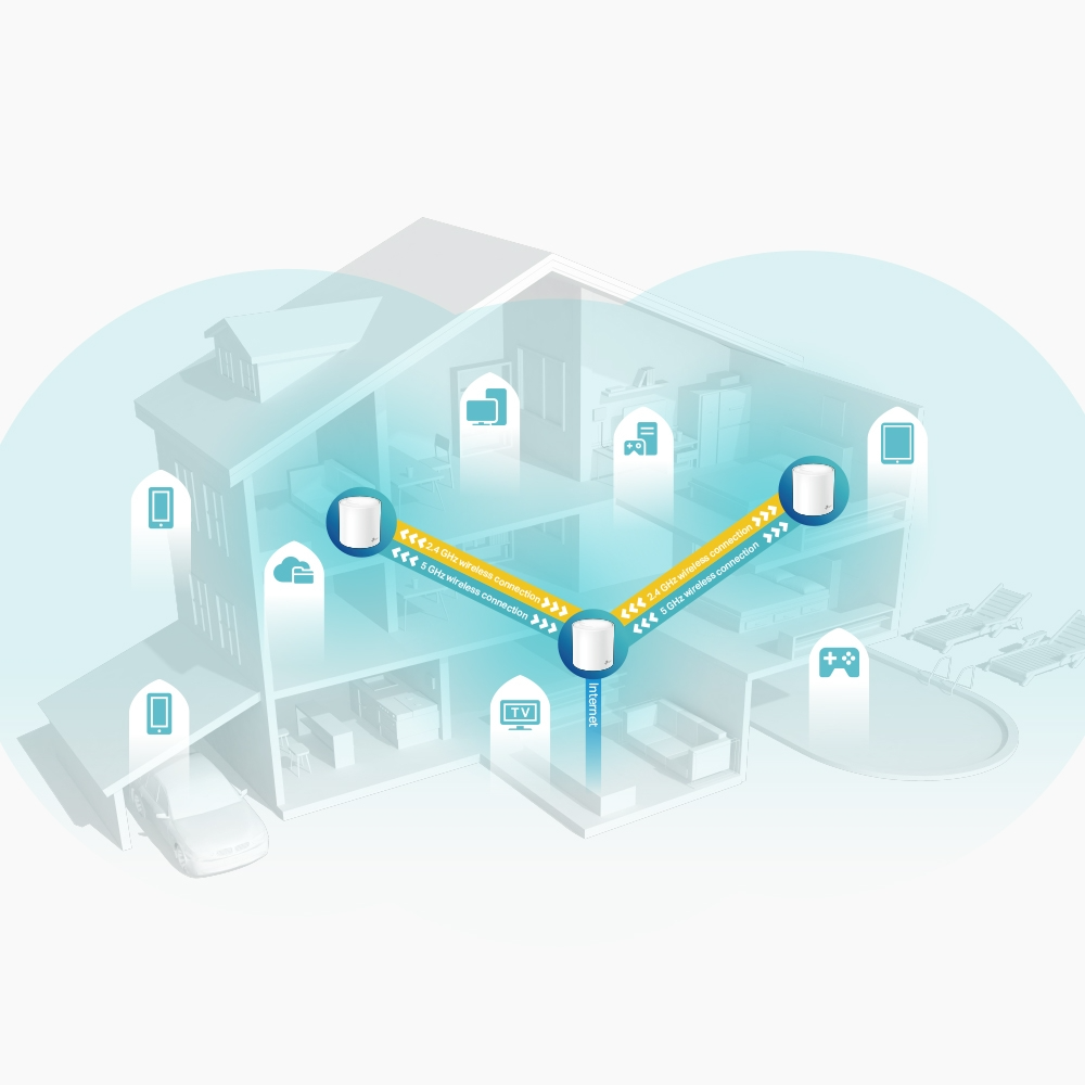 TP-Link Mesh means Deco units work together to form one unified network. Your phone or tablet automatically connects to the fastest Deco as you move through your home, creating a truly seamless Wi-Fi experience