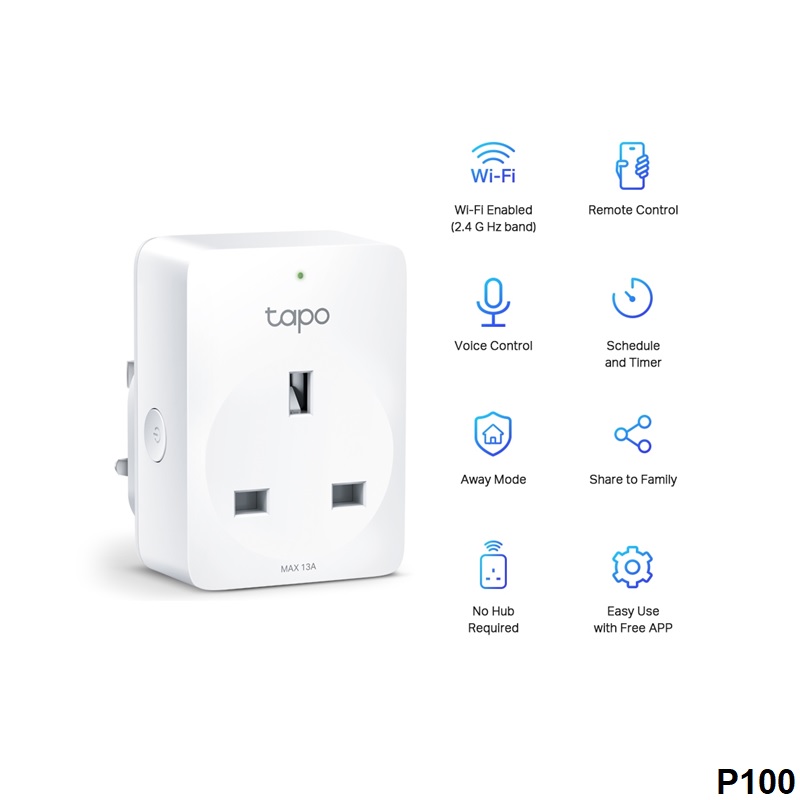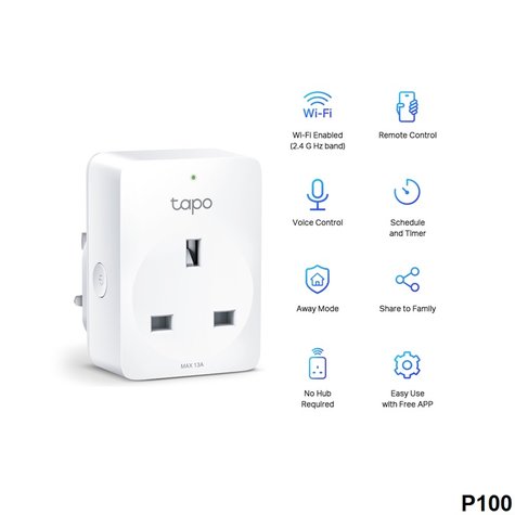 TPLINK Tapo P100 Mini Smart WiFi Socket Plug 2.4GHz, Remote Control