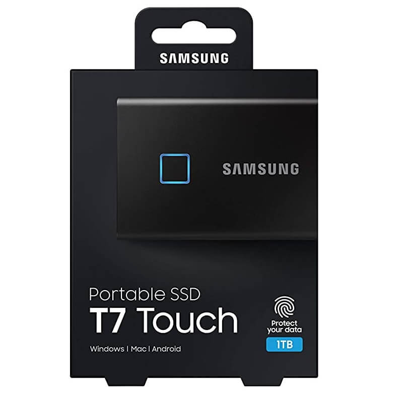 The T7 Touch is compatible with PC, Mac, Android devices, gaming consoles, and more. Included in the box are USB Type C-to-C and Type C-to-A cables for added convenience.