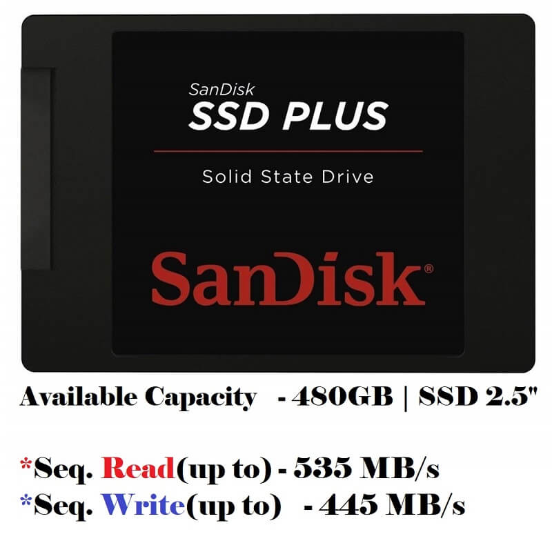 - SanDisk 480GB SSD Plus SATA III 2.5″, 535MB/s