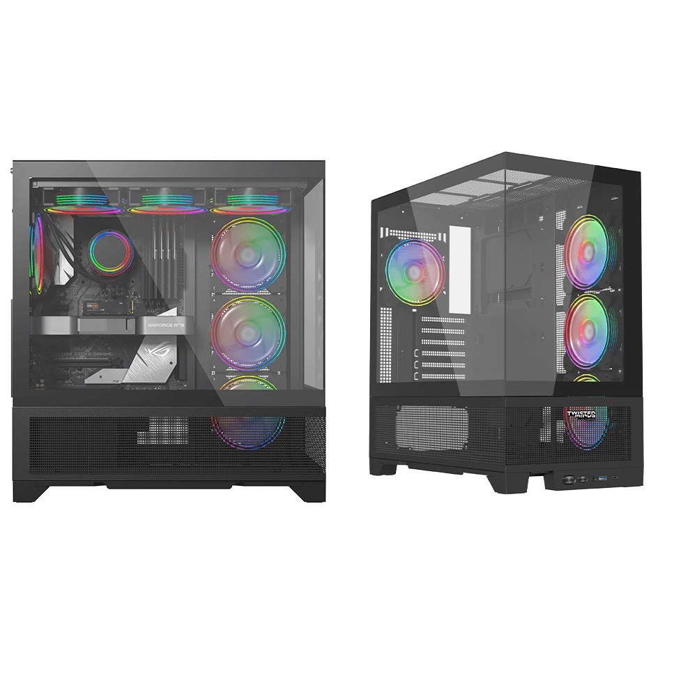 This not only showcases your high-performance components but also adds a touch of luxury to your setup. The front panel, adorned with tempered glass and mesh, combines aesthetics with optimal airflow for a perfect balance.