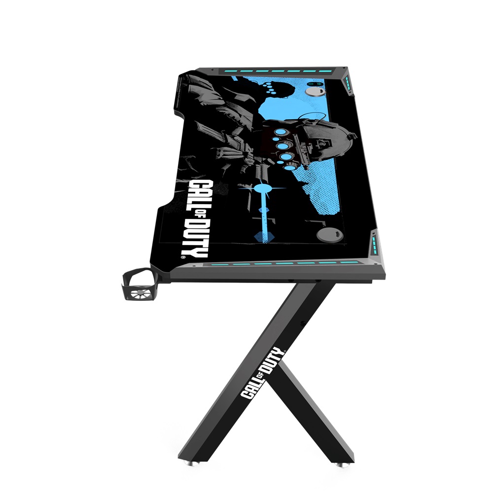 - GameOn Call Of Duty (COD) Hawksbill Series, Black/Blue, RGB Flowing Light Gaming Desk With Mouse pad, Headphone Hook & Cup Holder