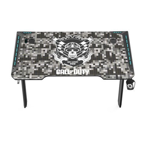 • GameOn Call Of Duty (COD) Hawksbill Series, Black/Grey, RGB Flowing Light Gaming Desk With Mouse pad, Headphone Hook & Cup Holder