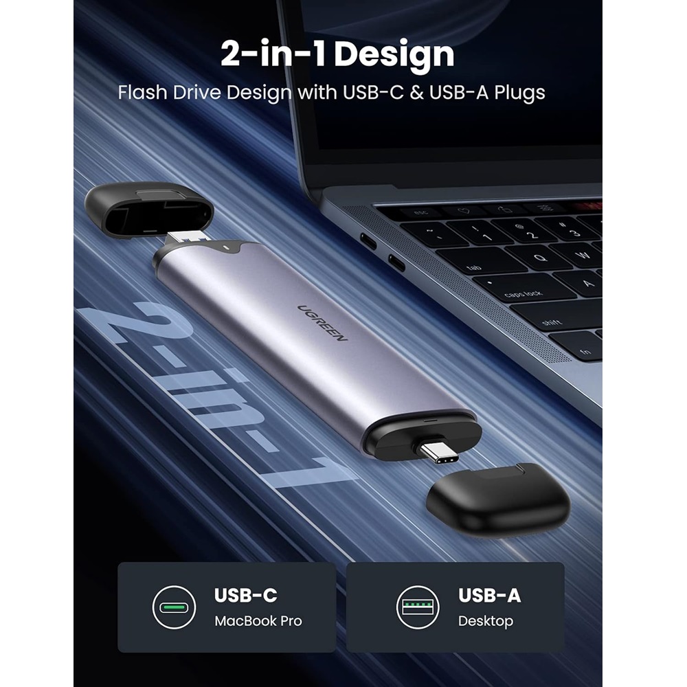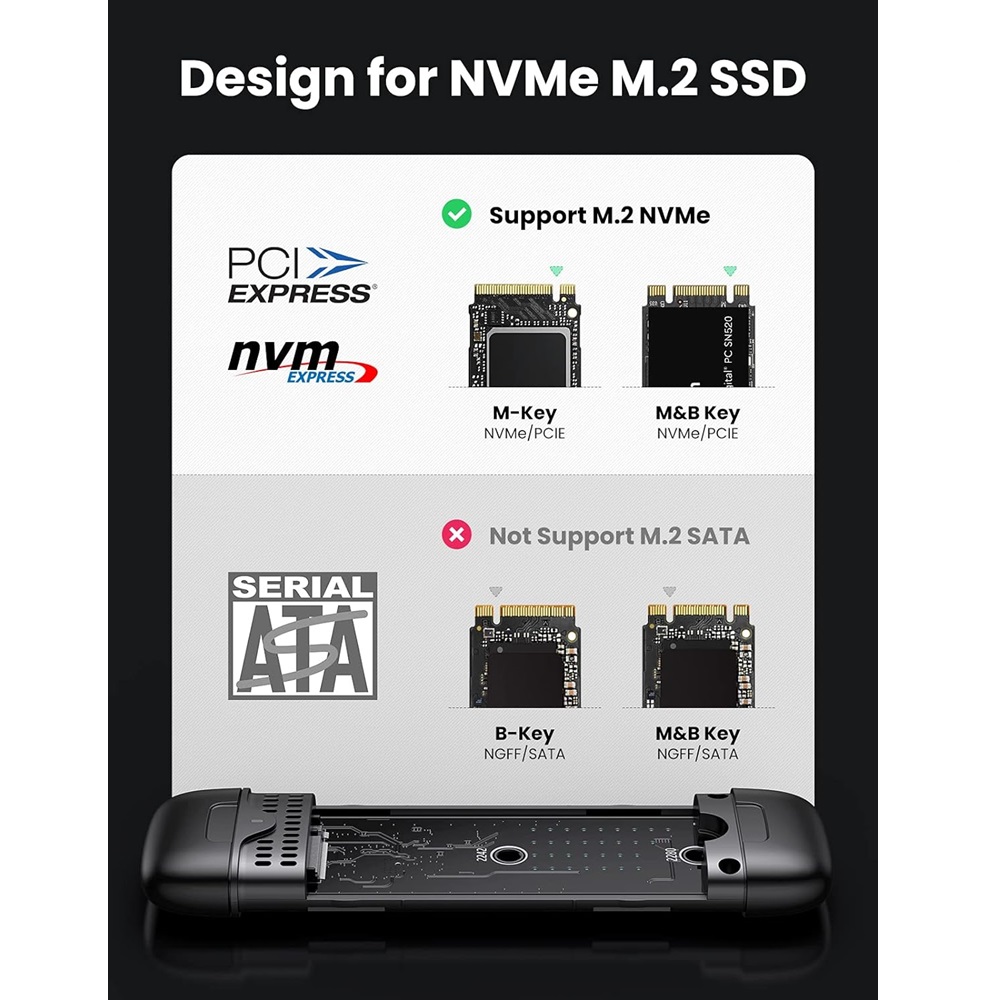 - 2 in 1 NVME Enclosure: The 2 in 1 USB-C and USB-A ports design offers an easy way to connect M.2 to USB-C or USB-A device. UGREEN SSD enclosure fits M-Key & M+B Key NVME PCIE based SSD above 2TB. Note: Do not support B Key NVME, M and B&M Keys SATA.