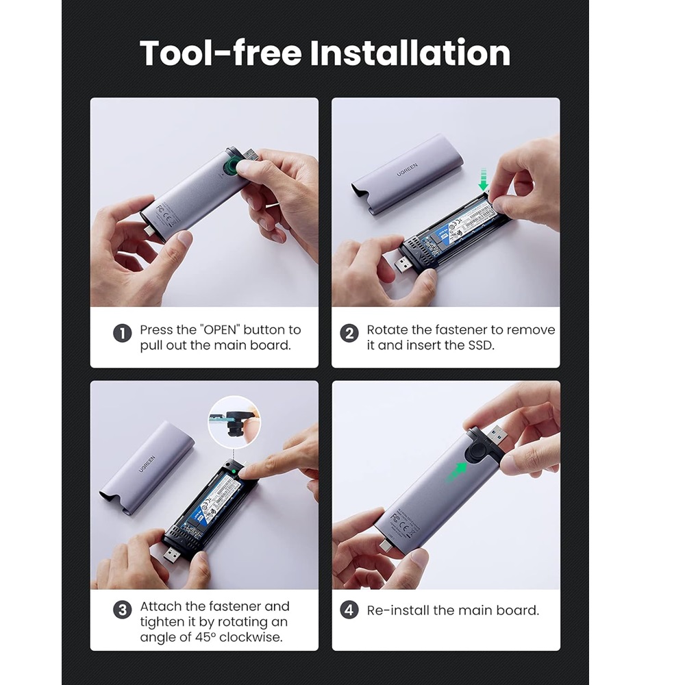 - UGREEN CM353 M.2 NVME SSD Enclosure Dual Port USB-C USB-A