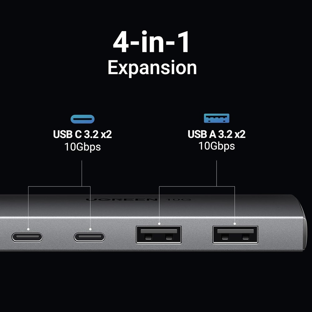 - UGREEN CM480 USB-C Hub 4 Ports, 2 Type-C, 2 Type-A, USB 3.2, 10Gbps