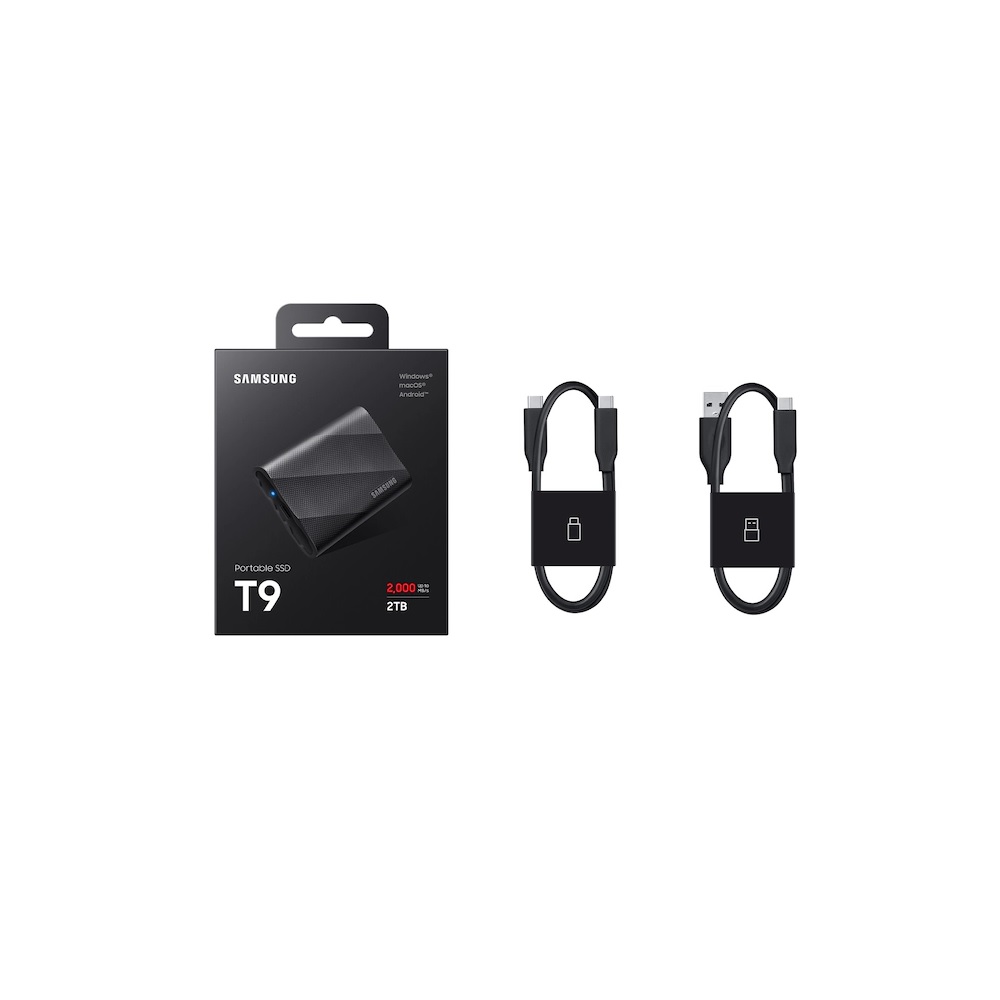 - SAMSUNG 1TB Portable SSD T9 USB 3.2 Gen2x2, 2000MB/s (Black)
