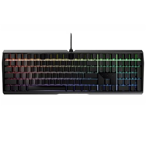 The Cherry MX 3.0S RGB Mechanical Keyboard is a full-sized keyboard that features original Cherry MX Blue switches, a technical design, aluminium housing, RGB lighting, full N-key rollover, anti-ghosting, windows lock key, keyboard shortcuts, abrasion-resistant laser-etched keycaps and a detachable USB interface.