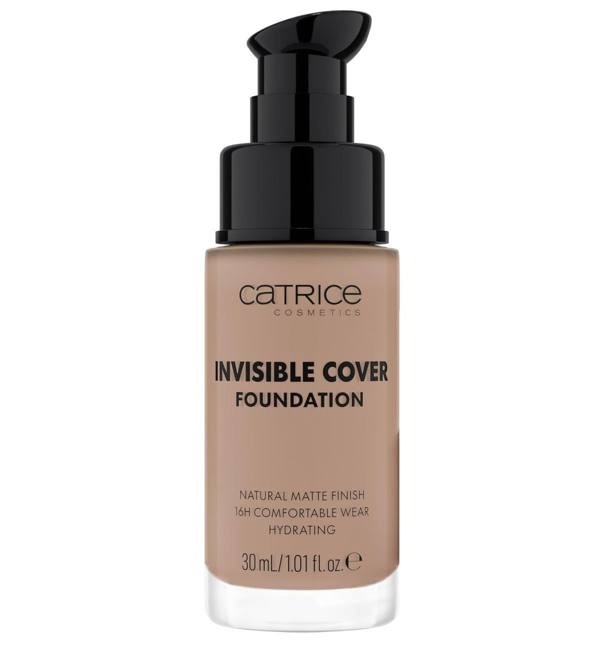 يوفر كريم الأساس Catrice Invisible Cover بدرجة اللون 030N بشرة طبيعية تدوم طويلاً ويوفر راحة عالية عند الارتداء. يوفر هذا الأساس بلون محايد مع درجات لونية متوازنة لمسة نهائية طبيعية وغير لامعة. تحتوي التركيبة على حمض الهيالورونيك والصبار، اللذين يرطبان ويغذيان البشرة. الأساس غير كوميدوغينيك، مما يعني أنه لا يسد المسام. فهو مثالي للحصول على بشرة خالية من العيوب.