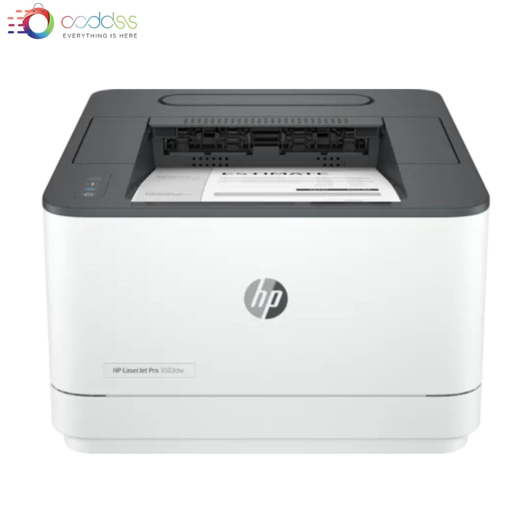 HP LaserJet Pro3003dw Printer; HP Black LaserJet Toner Introductory Cartridge (yield ~1000 pages); Setup Guide; Reference Guide; Regulatory Flyer; Warranty Guide; Power cord |