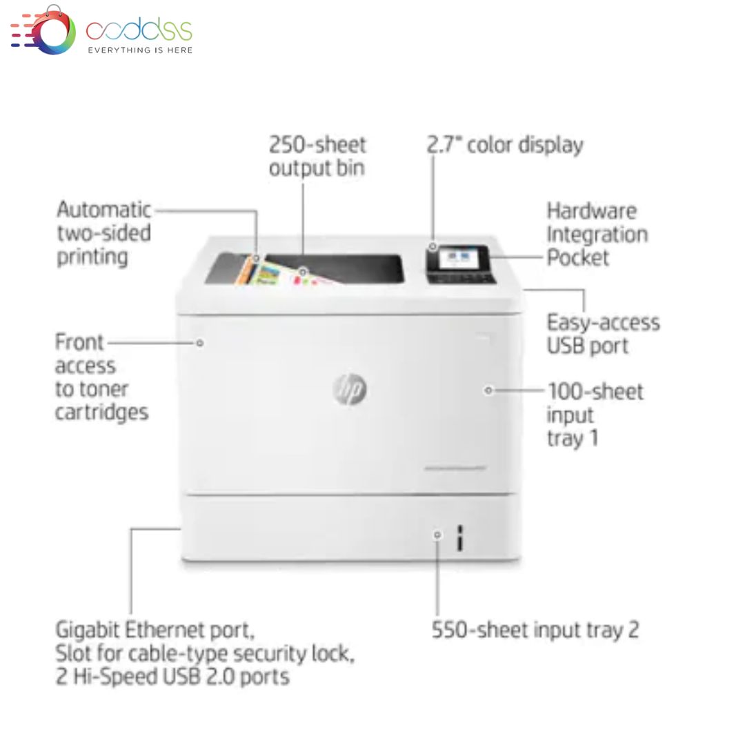 The HP Color LaserJet Enterprise M554dn is a high-performance color laser printer designed for businesses, offering fast printing speeds up to 33 pages per minute, automatic duplex printing, robust security features, and versatile connectivity options
