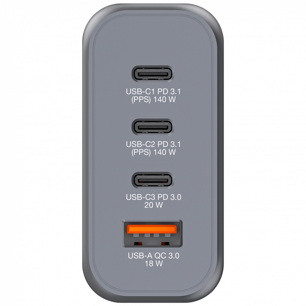 • Supports charging of up to 4 devices simultaneously with a maximum total output of 140W