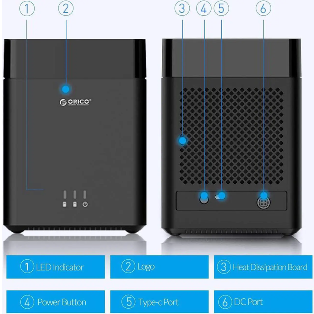 Orico DS200C3 USB-C 2-Bay External Hard Drive Enclosure Case