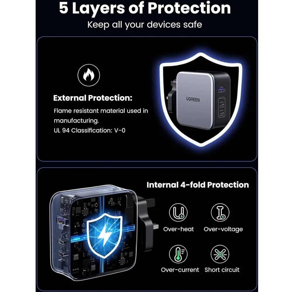 UGREEN 140W GaN Wall Charger Hyper Fast MacBook Pro Charger 3-in-1 Multi-port Laptop Charger
