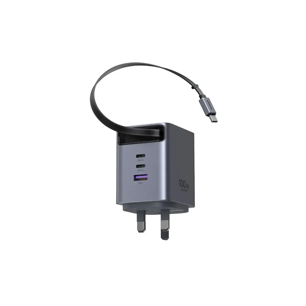 UGreen X616 Nexode Pro 4-Port 100W GaN Fast Charger Adapter with Retractable Cable