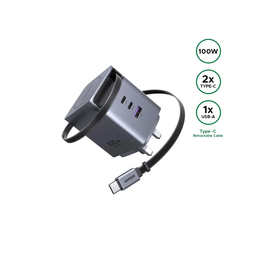 UGREEN Charge 4 Devices at Once GaN Tech, Compact & Efficient 100W Fast Charge & Retractable Cable